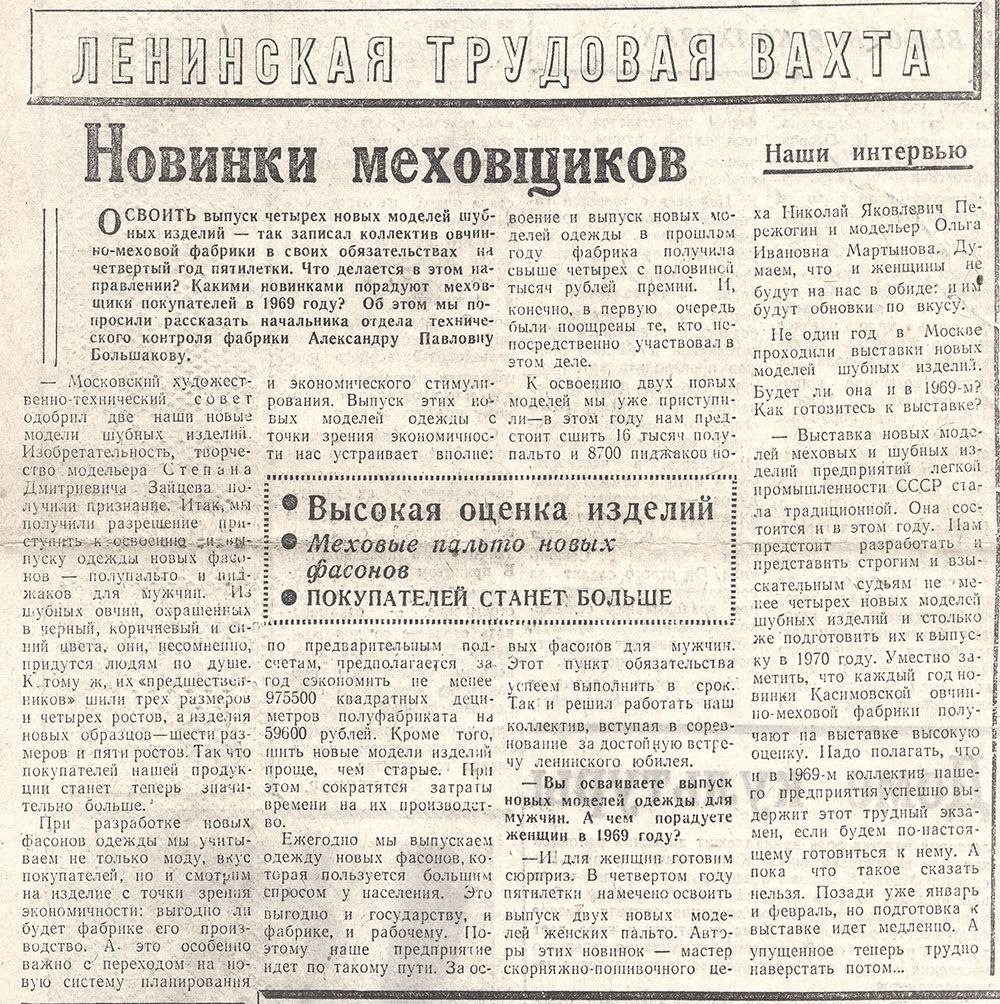 Сегодня хотим поделиться уникальной находкой — выпуском газеты «Мещерская новь» 1969 года из фонда Касимовского историко-культурного музея. Здесь подробно рассказывается о новых изделиях, производимых тогда на легендарной фабрике города.